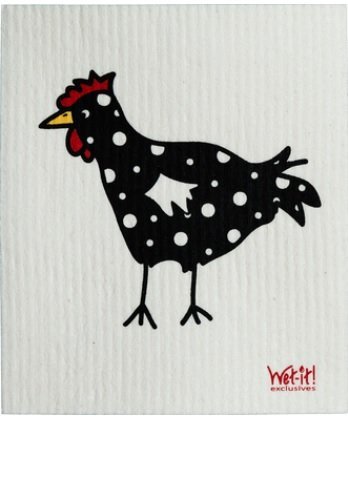 Swedish Treasures Wet-it! Cleaning Cloth, Black & White Spotted Chicken, Super Absorbent, Reusable, Biodegradable, All-purpose