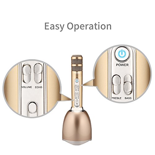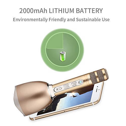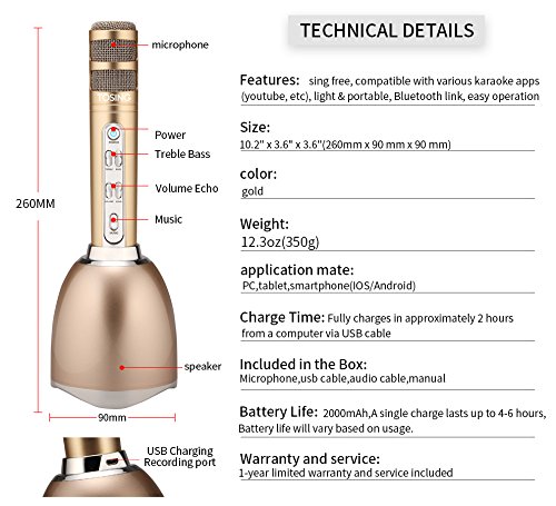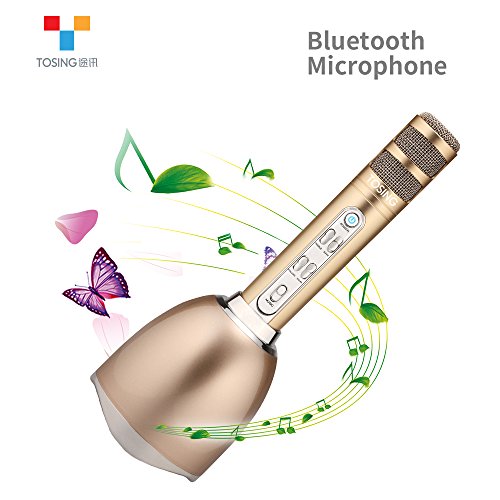 TOSING PLUS Wireless Karaoke Microphone Bluetooth Speaker 2-in-1 Handheld Sing & Recording Portable KTV Player Mini Home KTV Music Machine System for iPhone/Android Smartphone/Tablet Compatible (gold)