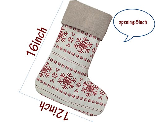 3.Stocking Size:16 inches x 12 inches, opening: 8 inches. These stocking are 16" tall - a good large size, plenty of room for presents and candy. Each stocking has a sturdy hanging loop.
