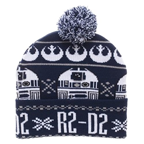 Product DescriptionStar Wars R2-D2 Heavy Knit Cuff Beanie Winter Hat with Pom NWT 100% Acrylic One size fits most teens and adults New With Tags0