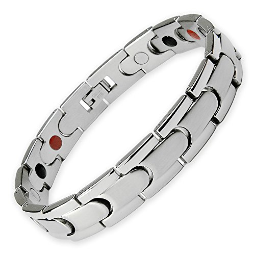 Studio : ONE ION Publisher : ONE ION Binding : Misc. Product Description Featured with a perfect combination of sturdy 316L stainless steel links and 4-in-1 key components, Silver Energy is perfect for you and the special one for any occasions. Each link has been well polished and brushed to give a sleek look; 4 key components (powerful samarium cobalt magnets, far-infrared chips, bio-ceramic chips, and germanium-tourmaline mixed chips) are firmly and orderly embedded on the back side to endow the bracelet a power touch. In addition, the classic fold over clasp will keep the bracelet securely fastened and each link is secured with permanent pins. As always, each ONE ION bracelet comes with our signature gift box for the best presentation and protection. You will also receive a bracelet link remover with no extra cost allowing you to adjust your favorite bracelet at anytime, anywhere. 0