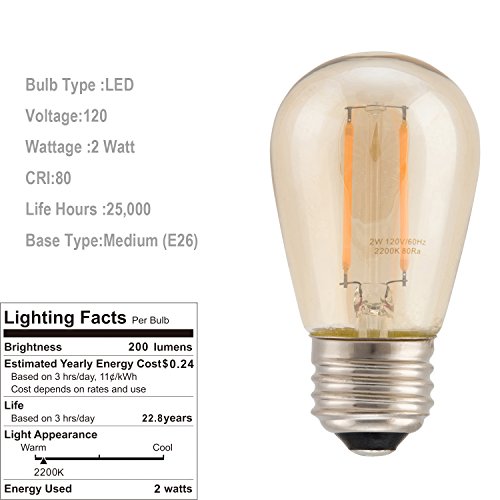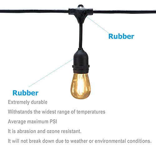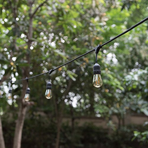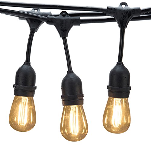 Generalight Advanced Outdoor LED String Lights for Patio Backyard BBQ-Commercial Grade Lighting-48 Feet-15 Energy saving 2 Watt S14 LED Filament Blubs-Heavy Duty-Amber Glass-Black