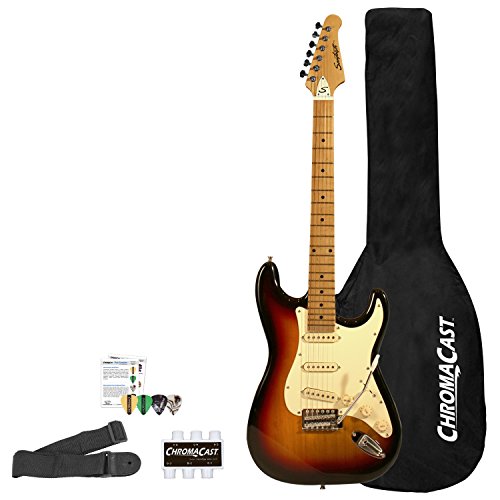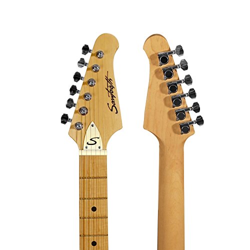 Studio : Sawtooth Publisher : Sawtooth Product Description Sawtooth guitars are the best value in electric guitar design. These highly versatile electric guitars offer solid tone, classic styling and are suited for all styles of music. Crafted to give you a great-sounding, sleek-looking, easy playing electric guitar with a vintage vibe. Sawtooth guitars feature 3-ply pickguards, chrome tuners, Sawtooth truss rod covers and tremolo bridge. These guitars are perfect for any student, beginner or aspiring musician and will also meet the approval of a seasoned guitarist. 0