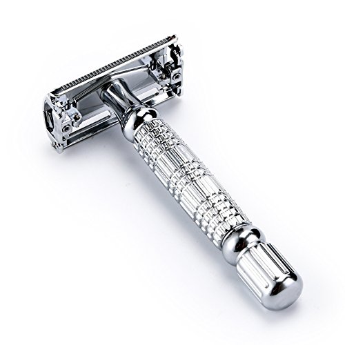 BAILI Luxury Top Grade Barber Butterfly Head Shaving Blade Safety Razor Shaver Knife Holder Set for Men Face Beard Silver