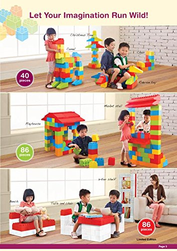 Engage your child's imagination with the Massbricks 86 Piece Building Block Set. These life-sized building blocks will entertain your little one for hours, indoors or out. Made of poly-propylene, these colorful blocks are durable enough to hold up again the elements and your child's energetic play. Designed with your child in mind, this set is lightweight with curved edges, making it perfect for children between the ages of 18 months and 8 years. Life-sized interlocking brick toys. Made from durable poly-propylene. Lightweight, with curved edges. Can be used indoors and outdoors. Recommended for ages 18 mos. to 8 yrs.. Dimensions: 25.71L x 17.12W x 18.11H in..