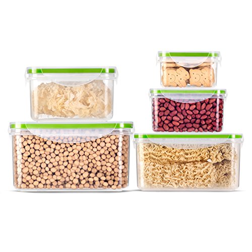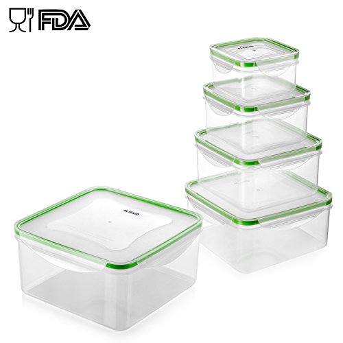 Food Storage Containers with Lids - ALISKID 5 Pack Airtight Plastic Crisper Containers Set, BPA Free, Freezer, Dishwasher, Microwave Safe