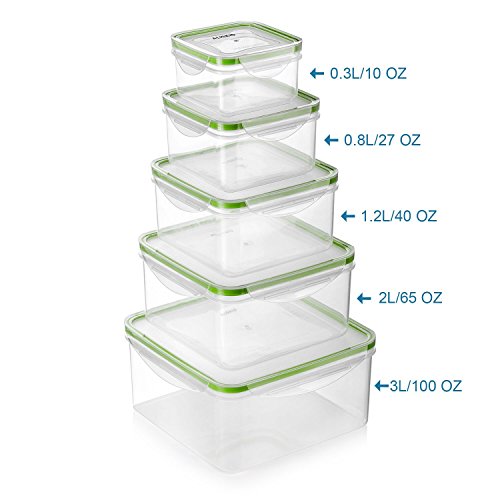 - PACKAGE INCLUDING: 5 pack square containers, 0.3L/10 OZ ; 0.8L/27 OZ ; 1.2L/40 OZ ; 2L/65 OZ ; 3L/100 OZ , Thickness: 3MM