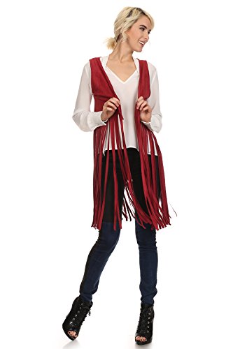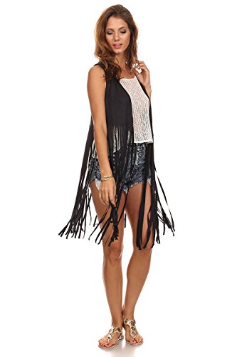 -. Title : MeshMe Womens Mari - Faux Suede Fringed Crop Vest