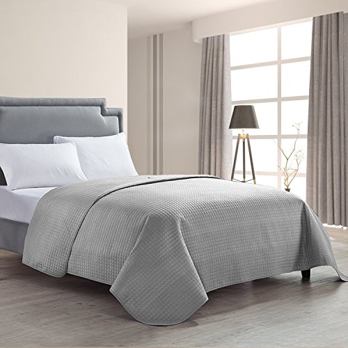 HollyHOME Luxury Checkered Super Soft Solid Single Pinsonic Bed Quilt Bedspread Bed Cover, Grey, King