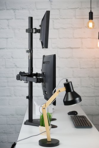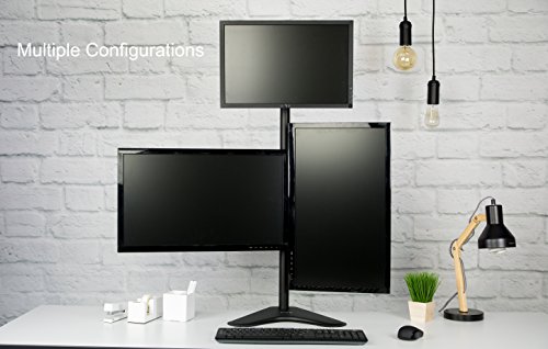 -. Binding : Office Product -. Brand : VIVO -. EAN : 0617401139828 -. Feature : COMPATIBILITY - Holds Three Screens up to 27" and 22 lbs Each with VESA Mount (75 X 75 & 100 X 100 mounting holes) / MOTION - +15 degree to -15 degree tilt, 360 degree swivel, 360 degree rotation, and height adjustability for optimal viewing angles / CABLE MANAGEMENT - System of clips integrated to keep potentially messy cords clean and organized / MATERIAL - High Grade Steel and Aluminum ensure the sturdiness and the durability of the stand / ASSEMBLY - Included is all the necessary mounting and assembly hardware for a simple installation process -. Label : VIVO -. Manufacturer : VIVO -. Model : STAND-V003E -. MPN : STAND-V003E -. NumberOfItems : 1 -. PackageQuantity : 1 -. PartNumber : STAND-V003E -. ProductGroup : PC Accessory -. ProductTypeName : COMPUTER_COMPONENT -. Publisher : VIVO -. Size : 24" - 29.9" -. Studio : VIVO -. Title : VIVO Triple LCD LED Computer Monitor Desk Stand Free Standing Heavy Duty Fully Adjustable, Mounts Three Screens up to 27" -. UPC : 617401139828