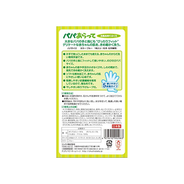 원본상품명: チュチュベビ? お風呂スポンジ パパあらって 5本指タイプ 右手左手兼用