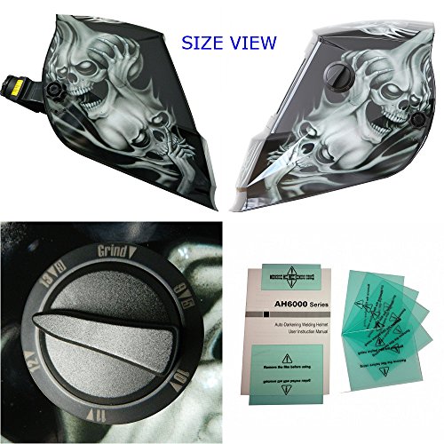 Antra AH6-260-6218 Solar Power Auto Darkening Welding Helmet with AntFi X60-2 Wide Shade Range 4/5-9/9-13 with Grinding Feature Extra lens covers Good for Arc Tig Mig Plasma CSA/ANSI