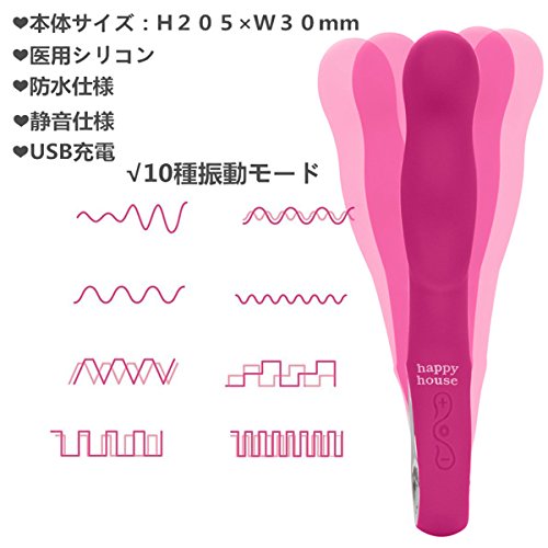 ① function: vibration mode choice from 10 types. G spot, U spot, clitoris, 3-point co-stimulation, gives the peak of pleasure. ② Material: Since the safety medical silicon using environmental protection material, can be used with confidence even for the first time. ③ comfortable design: three projection design, at the same time stimulating women of A, U, G-sensitive spot. Bent on top, just like the shape of the vagina, increase the more pleasure. ④ economy: unnecessary battery with a USB rechargeable! When I compared to battery-powered, it is useful environmentally friendly. ⑤ Quality assurance: one year of quality assurance period. Initial failure within 30 days from the date of purchase for, will correspond directly understand you contact us "good exchange".