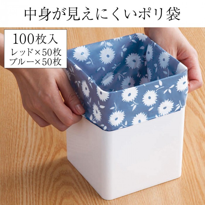 | <h1>花柄プリントで中身が見えにくい!2色組のポリ袋です。全面にプリントを施し、外から中身が見えにくいので、サニタリーボックス用ゴミ袋やエチケット袋として活躍します。紙おむつの処理や犬の散歩時にも便利。可愛い花柄なので、ちょっとしたプレゼントやおすそ分け袋としても使用できます。 ゴミ袋/ポリ袋/袋/エチケット/トイレ/サニタリーボックス/衛生用品/</h1> |