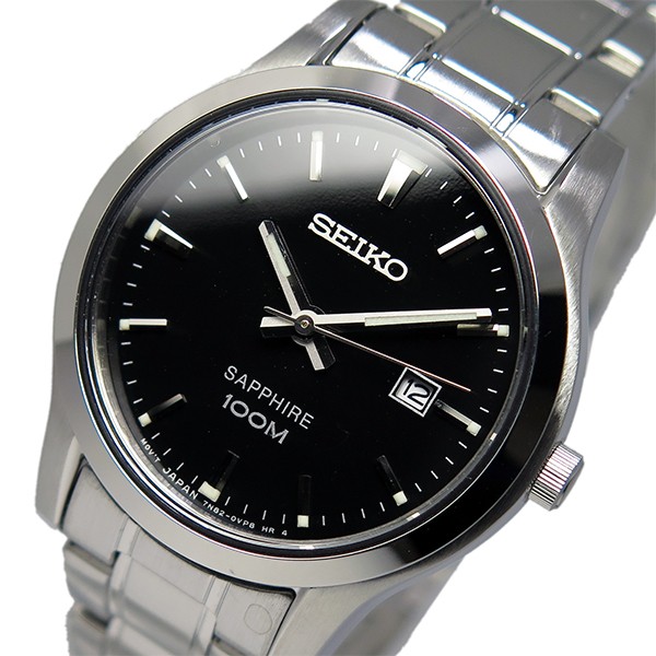 クオーツ、100m防水防水、日付カレンダー、カラー:ブラック(文字盤)、シルバー(ベルト)