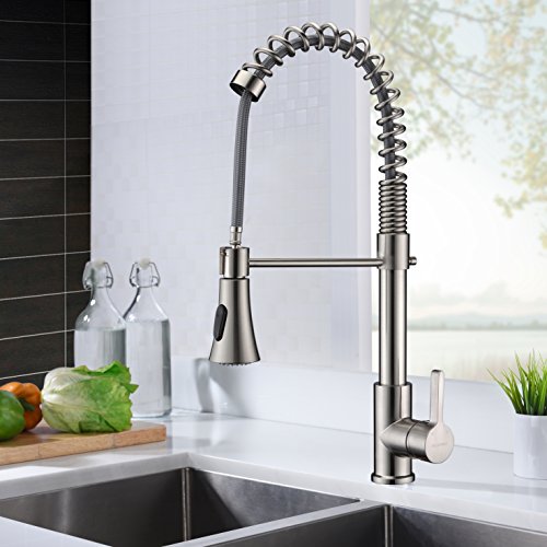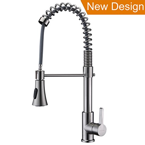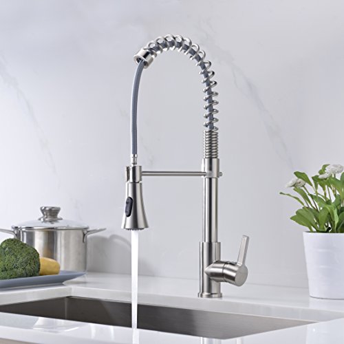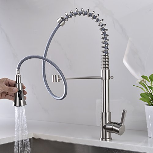 Delle Rosa Pre-rinse Spring Kitchen Faucet Durable and Sturdy Single Handle Pull Out Kitchen Sink Faucet Brushed Nickel