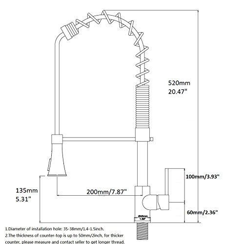 High arc spring pull out spout and swivel 360 degree provides plenty access of the sink.