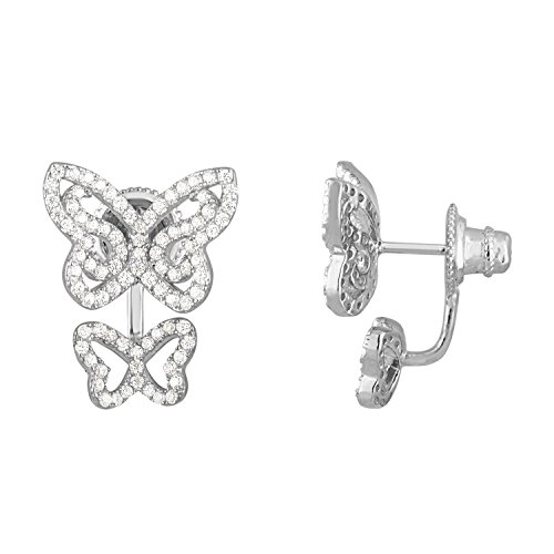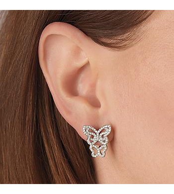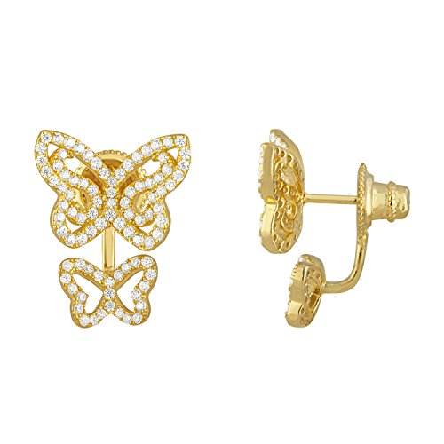 Graceful butterflies, Sterling silver and CZ earrings. 14kt. Gold plated over sterling silver. Double earrings display the larger size butterfly on the ear and the smaller rose butterfly is attached to the friction. Definitely an eye catcher. A very lucky lady will be able to wear these unique earrings. Ready to ship. EZ Creations is a company that manufactures most of what we sell. We search the globe to find unique products to offer to our valued customers. Our company stands behind every product we sell. We guarantee your satisfaction. That is why we are in business for over 30 years. Our experts are always available to answer questions over the phone or via email.Feature