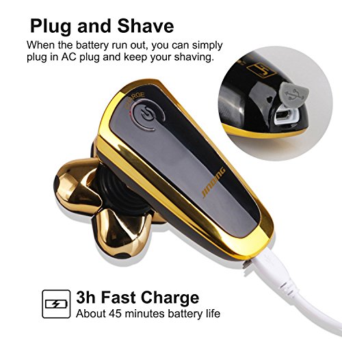 - 【Convenient Charge】Micro USB cable charging, Great for travel, charging your shaver anyplace & anytime. Full of electricity protection, battery is low to remind. High performance lithium-ion battery provides 45 minutes of cordless running time. The charging indicator light is red when charging, and green when fully charged.