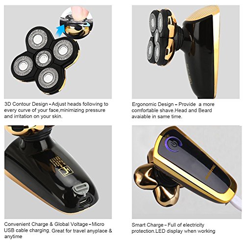 - 【Versatile & Ergonomic】This electric shaver is multifunctional razor for many different purposes.Hair and beard are available in same time. Mens electric razor makes you completely control it in the palm of your hand.Five shaving heads.Provide a more comfortable shave.