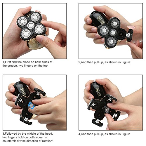 - 【3D Contour Design】The hair shaver have five shaving heads, it can adjust heads automaticly according to every curve of your legs, head or face, minimizing pressure and irritation on your skin. The dual self-sharpening blades can shave even the shortest details hairs on the legs, neck, sideburns & behind the ears.