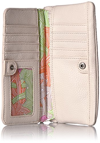 Features multiple interior credit card slots and zipper pockets for organization.