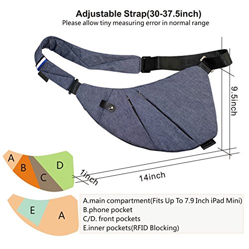 ❃Comfortable and Durable Multipurpose Chest Bag - 1).Adjustable strap (30 to 37.5 inch), fits up to a slender 5'9" adult. 2). Carry on right shoulder, bag on your left side, easy access. 3).Mini backpack purse uses branded quality SBS zippers and comfortable polyester fabric, precise stitching make it durable