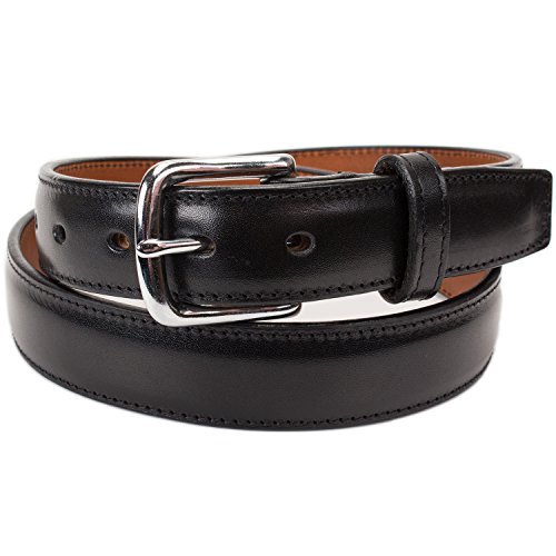 Handcrafted Italian Leather Dress Belt This handmade belt is crafted from genuine Italian leather in our Northeast Indiana workshop. Details include: - Genuine Italian Leather - Dual Layered with a 3rd layer of leather inside for a raised center look - 1 1/4" Wide - Approximately 5/32" thick - Has 7 holes spaced 1" apart - Rounded edged polished buckle minimizes stress on leather - Strong nylon stitching For proper sizing it is best to take your waist size 2 and order that belt size. Please do not use an old belt to size unless it is a Yoder Leather Company belt. Many off-the-rack belts do not use proper sizing and our belts will not fit properly when comparing to ours. 0 |