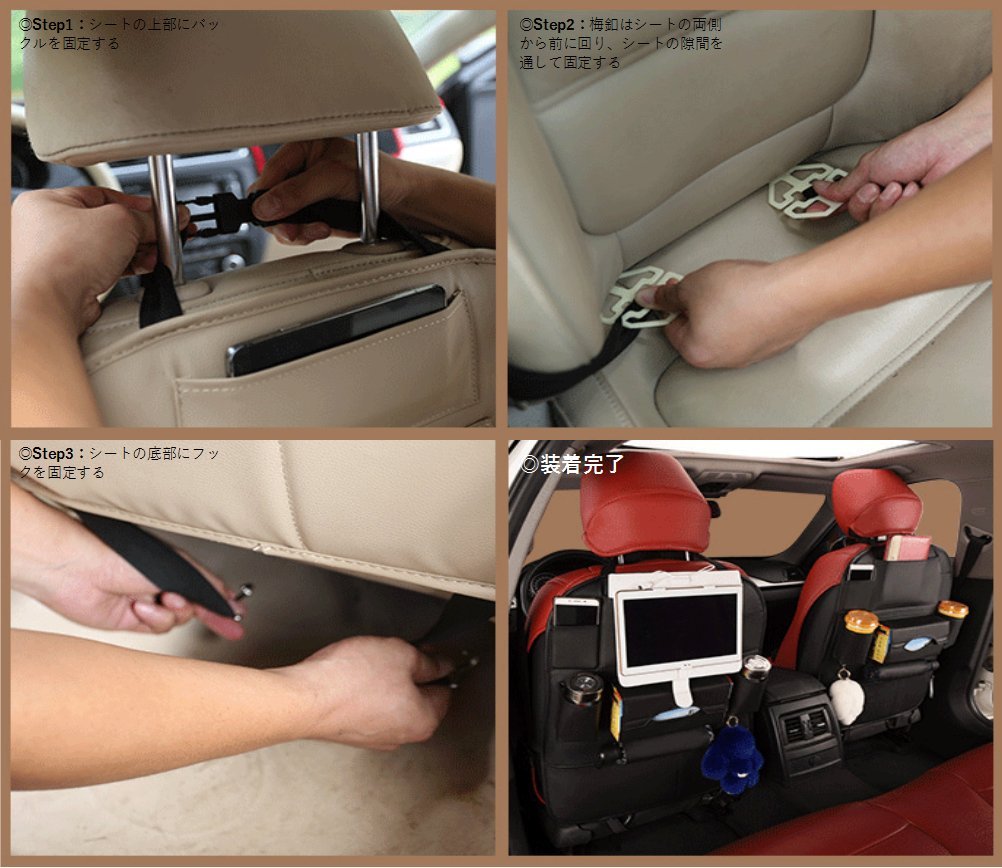 - When spending a long time in a car such as a self drive tour, of course, a seat back pocket which is useful also for everyday use!