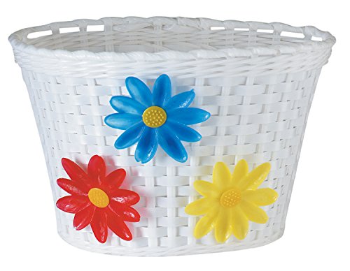 Product DescriptionWhite, woven plastic construction with cute, multicolored flowers. Mounting straps included. The size medium is 10˝x 6˝x 7˝.0