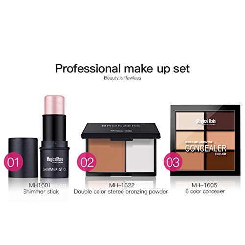 -. Binding : Misc. -. Brand : MagiDeal -. Feature : 6 Color Concealer Palette - Used to brighten skin color, minimizing spots and flaws, cover the dark circles under eyes. Help refine your face. Waterproof and can last for all day. / Double Color Bronzing Powder - Fine texture, make your face smooth, glossy and delicate. The bronzer accents help to creat a stereo face. Can also use as nose bridge shadow and eyebrow powder. / 3D Highlight Stick - Shimmer effect, define your cheekbones, perfect your nose and sculpt your jawline. Adds depth and definition to facial features. / This multi-functional cosmetics set meets your need for daily makeup -. Label : MagiDeal -. Manufacturer : MagiDeal -. MPN : 0342k182648285753555g6 -. PackageQuantity : 1 -. PartNumber : 0342k182648285753555g6 -. ProductGroup : Beauty -. ProductTypeName : BEAUTY -. Publisher : MagiDeal -. Studio : MagiDeal -. Title : MagiDeal New 6 Colors Face Correcting Concealer Palette + Shimemr Highlight Stick + 2 Color Bronzing Powder Makeup Set