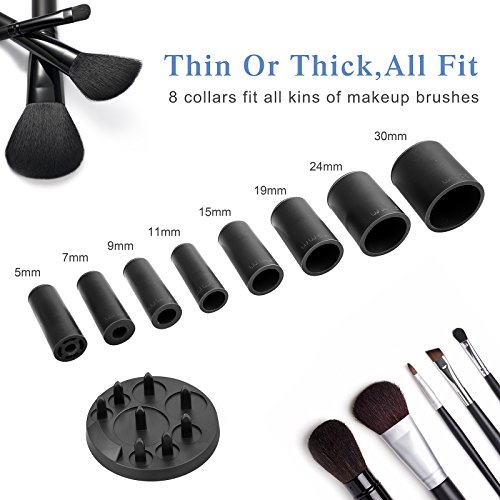 - ❤【SUIT FOR DIFFERENT SIZES】8 different sizes of rubber holders fits all your makeup brushes diameter perfectly in 0.2 inches, 0.28 inch, 0.39 inch, 0.43 inch, 0.59 inch, 0.75 inches, 0.94 inches, 1.18inch