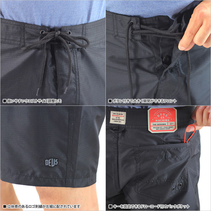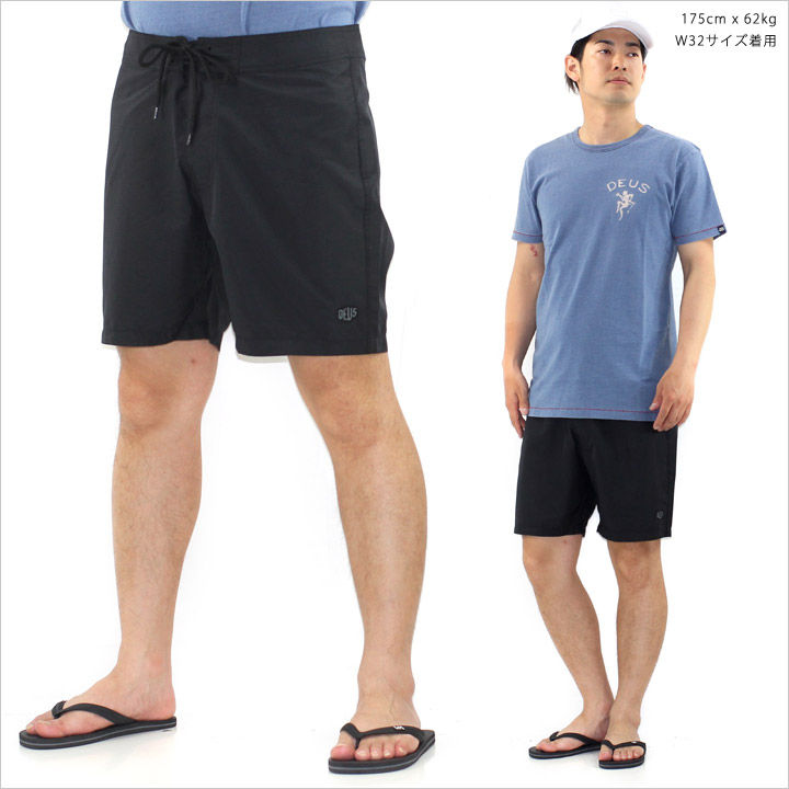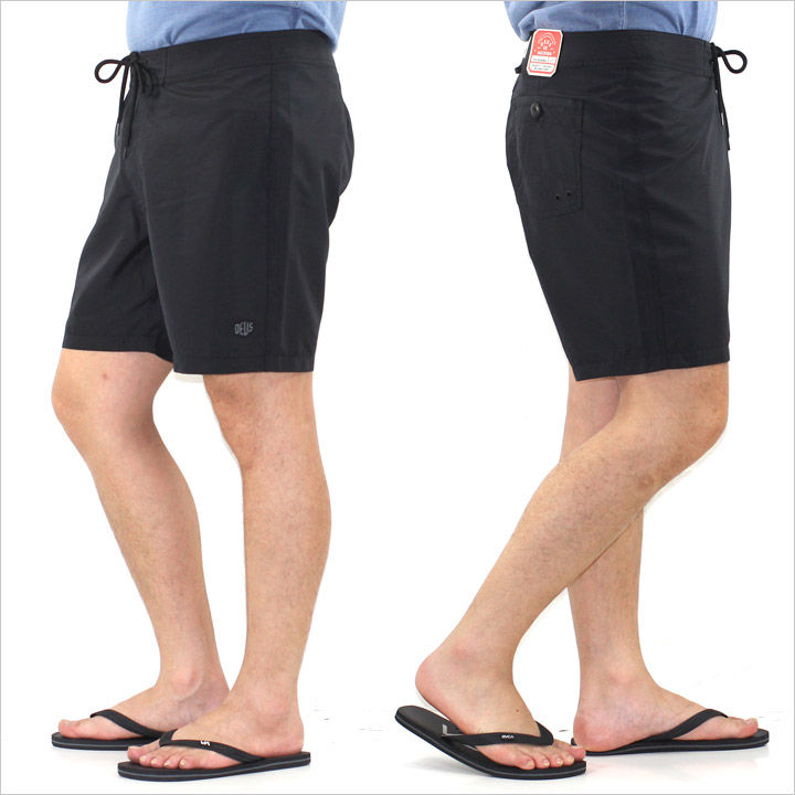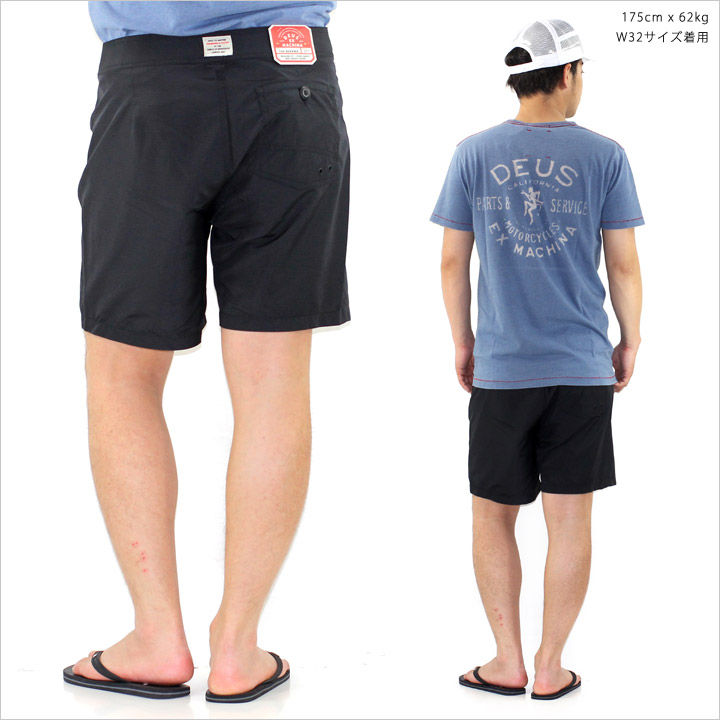極限まで飾りを排除した鮮麗されたシルエットが逆に新鮮で好印象なサーフショーツ。ポリエステル100%で着用感のストレスが全くなく、夏にもってこいの良質な逸品。気取らない大人サーフスタイルにはもちろんのこと、ボタニカルやボーダーなど幅広い夏の柄物アイテムとも相性バツグンの一着です。