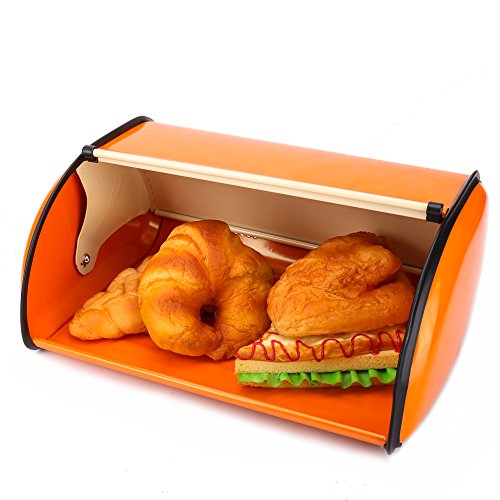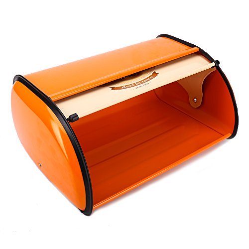 Hot Sales X459A Orange Metal Bread Box/Bin/kitchen Storage Containers/Home KItChen Gifts with Roll Top Lid