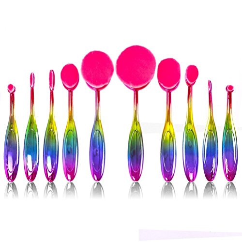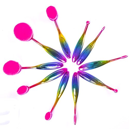 Acetery Colorful 10 Piece Rainbow Oval Makeup Brushes Set Tooth Brush Shape