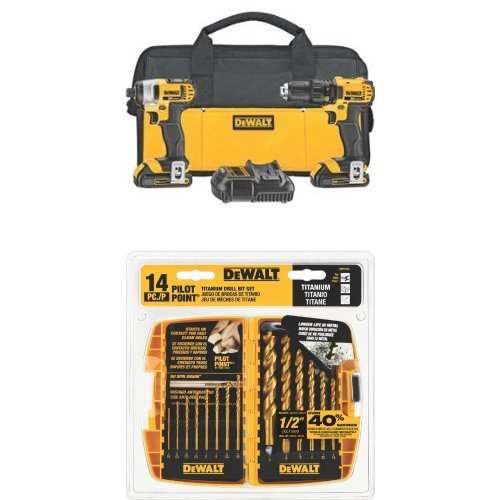 DEWALT DCK280C2 20-Volt Max Li-Ion 1.5 Ah Compact Drill and Impact Driver Combo Kit w/ DW1354 14-Piece Titanium Drill Bit Set