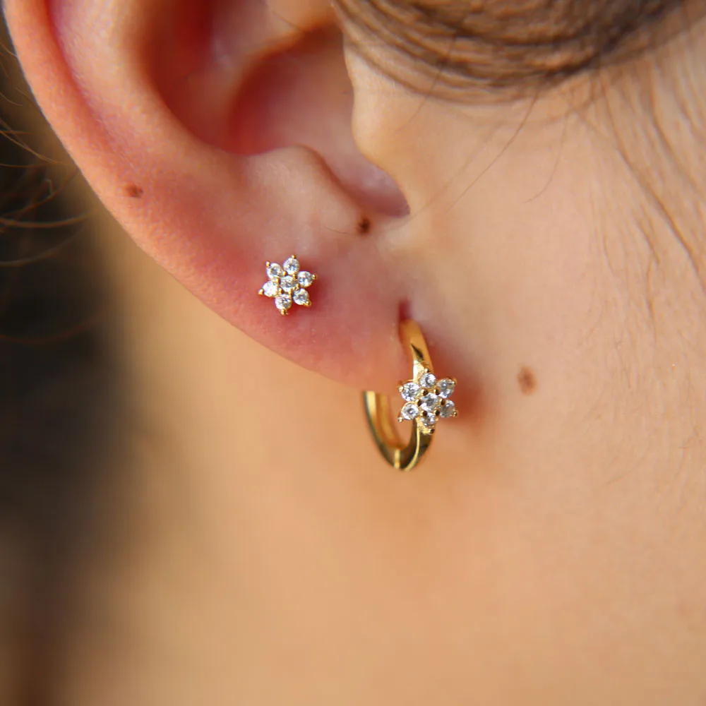 ITEM NAME:New simple delicate flower stud girl gift stud tiny cz stone gold silv