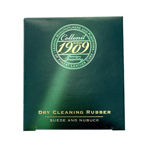 -. Feature : Collonil 1909 Cleaning Rubber Sponge Cleans All Suede and Nubuck Leather. / Simply rub the rubber against the area that needs to be cleaned. / Removes Dirt, Stains, and helps maintain the look and feel of your suede nubuck leather. / Made In Germany. Sold at premium high end designer stores. Money-back satisfaction guarantee. / We recommend first using the Collonil Universal Textile Cleaning brush to remove large deposits of dust and dirt from the suede, then after using the Collonil Spray Cleaner of your choice, such as the Collonil Protect & Care or Collonil Organic bamboo Lotion, allow to dry then use the Collonil 1909 Dry Clean Rubber to bring your suede back to its original roughened up look.