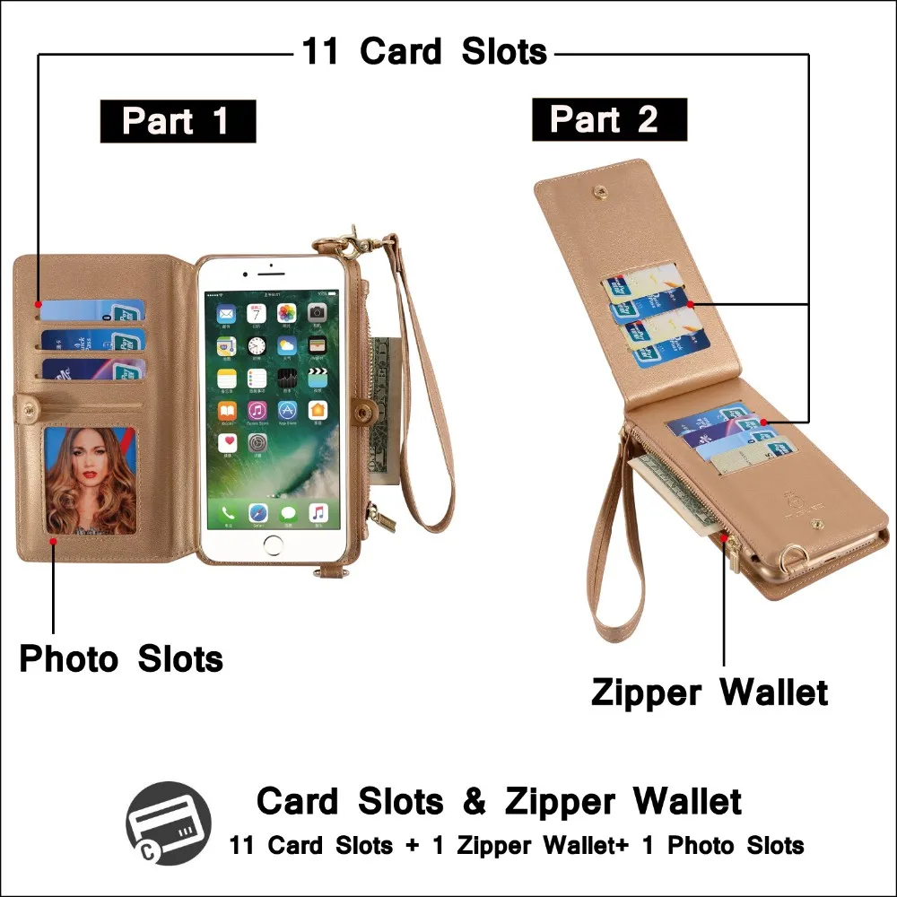 4. Feature: u0026nbsp;14 Card Slot + Photo Frame+ Wallet + hand strap + Strap + Detachable Phone Case + Hanging pockets + Stand Cover +u0026nbsp;Flip Stand