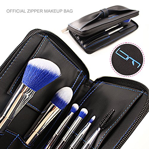 Brush Master 6 Pcs Travel Makeup Angle Powder Eyeshadow Blush Eyelash Brushes with Cosmetic Bag Black