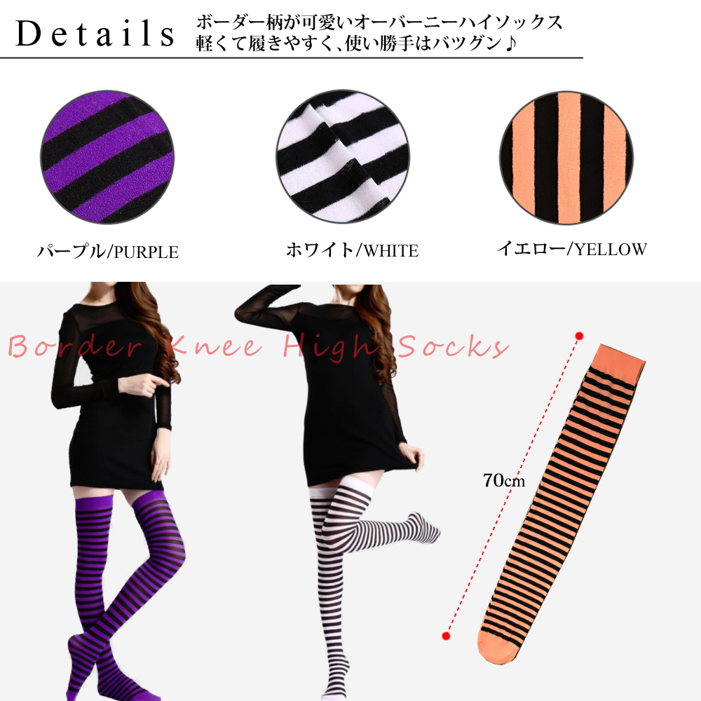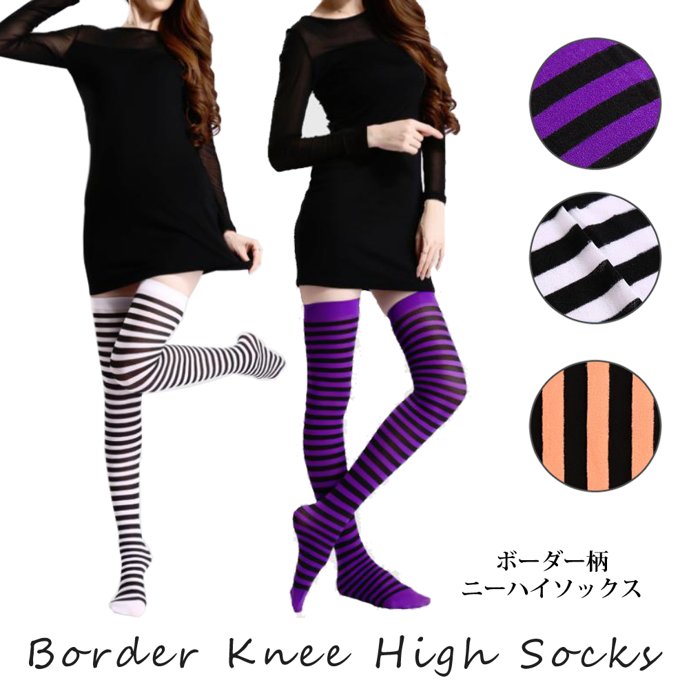 ◆ボーダー柄の可愛いニーハイソックス