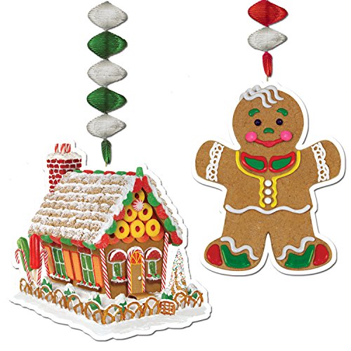 2 - Gingerbread House Christmas Danglers - 1 - 30 inches long Gingerbread House Dangler and 1 - 30 inches long Gingerbread Man Dangler