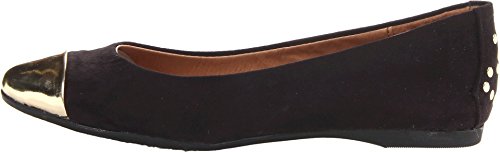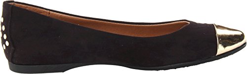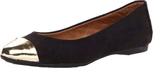 Supple suede upper with metal toe cap. Soft leather lining. Lightly cushioned leather footbed. Flat heel ensures comfort. Sturdy synthetic sole. Imported.