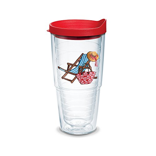Tervis Teal Beach Chair Emblem Clear Inner Tumbler with Red Lid, 24 oz