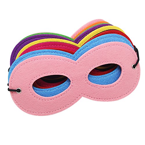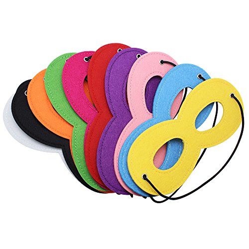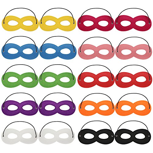 -. Feature : Wide uses: superhero cosplay half masks use for birthday party, masquerade, prom, Christmas, Halloween, dress-up, fashion shows, costume party, etc. / 10 different colors: red, yellow, orange, blue, purple, pink, black, white, green and rose red, 10 different colors meet your different preference / Measurement: each mask size is 17.5 x 7.5 / 6.89 x 2.95 inch, the black elastic rope allow you to adjust the size to fit your head well / Felt masks: made of good quality felt material, soft to wear, non-toxic, with fine tidy stitch and pre-punched hole, comfortable for you to wear / Quantity: the package includes 20 pieces of superhero masks and 20 strips of elastic ropes, each mask comes with an elastic rope