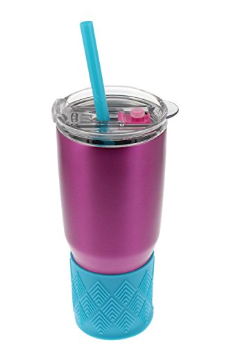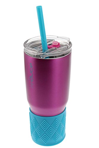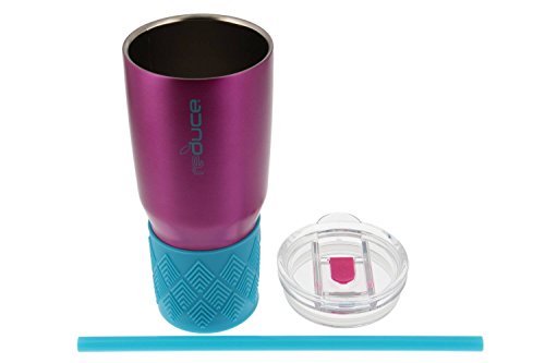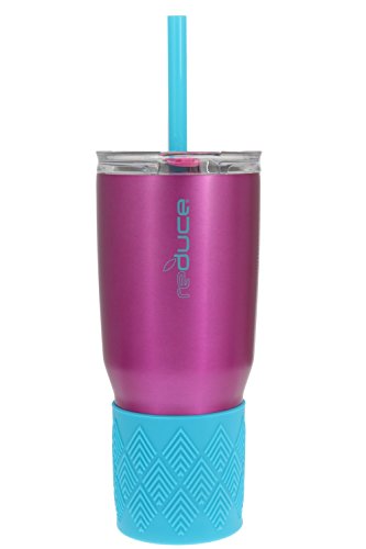 reduce COLD-1 Vacuum Insulated Stainless Steel Tumbler with Silicone Grip, 3-in-1 Lid, 24oz - Tasteless and Odorless (Fuchsia w/Blue Accents)