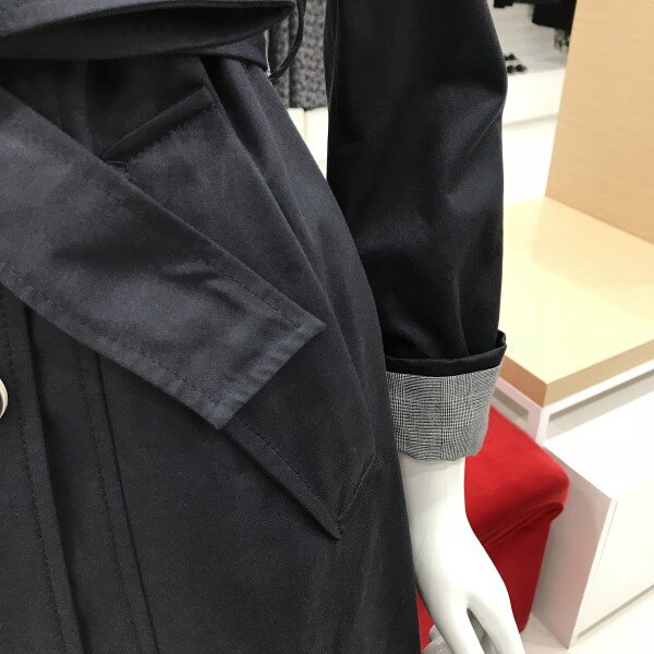 기본 트렌치코트로 슬림하게나온스타일입니다매년나오는 기본트렌치코트로 잇아이뎀입니다소매부분 체크장식으로포인트를주었어요