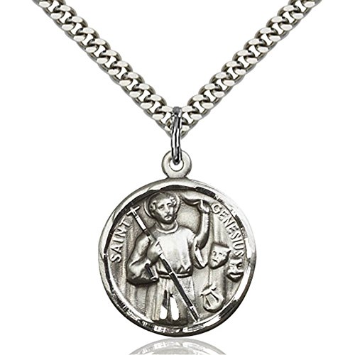 (Bonyak Jewelry Saint Medal Collection)/Baby Stationery/Stationery Sets/DIRECT FROM USA/Sterling Silver Men's GENESIUS Pendant - Includes 24 Inch Heavy Curb Chain - Deluxe Gift Box In...