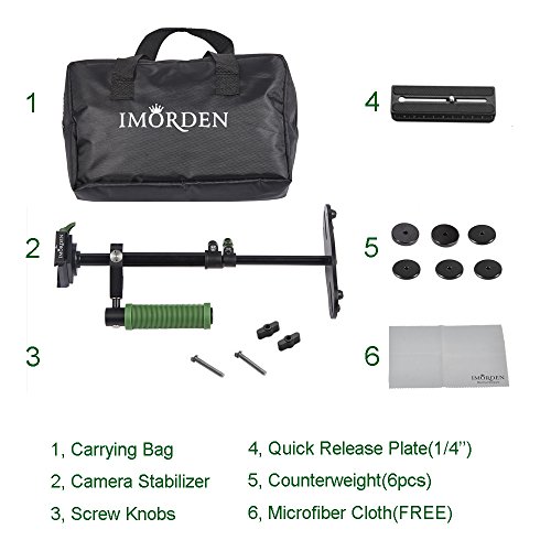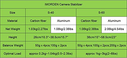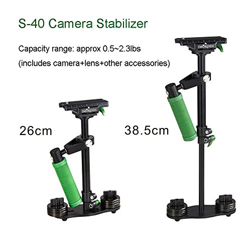 IMORDEN Aluminum S-40a Handheld Camera Stabilizer for Gopro, Sony, Panasonic DSLR Camera(0.5~2.3lbs) with Quick Release Plate(1/4'' Screw) and Counterweight(100gx2, 50gx4)