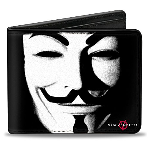 -. Binding : Apparel -. Brand : Buckle Down -. ClothingSize : One Size -. Color : Multi-color -. Department : mens -. EAN : 0700146437363 -. Feature : This awesome men's bi-fold wallet is made from premium vegan leather. / It measures 4.0x3.5x0.5 Inches, and features the standard billfold, 5 card slots, and windowed ID holder. / The logos are applied using advanced printing technologies, so the wallet will still look good after years of hard use. / The gorgeous artwork is applied using the latest printing technology, so it will hold up well over time. / This product is Officially Licensed by Vendetta -. Label : Buckle-Down -. Manufacturer : Buckle-Down -. MPN : PUW-VVE -. PartNumber : PUW-VVE -. ProductGroup : Apparel -. ProductTypeName : ACCESSORY -. Publisher : Buckle-Down -. Size : One Size -. Studio : Buckle-Down -. Title : Bi-Fold Wallet - V FOR VENDETTA Guy Fawkes Mask CLOSE-UP Black/White/Red -. UPC : 700146437363